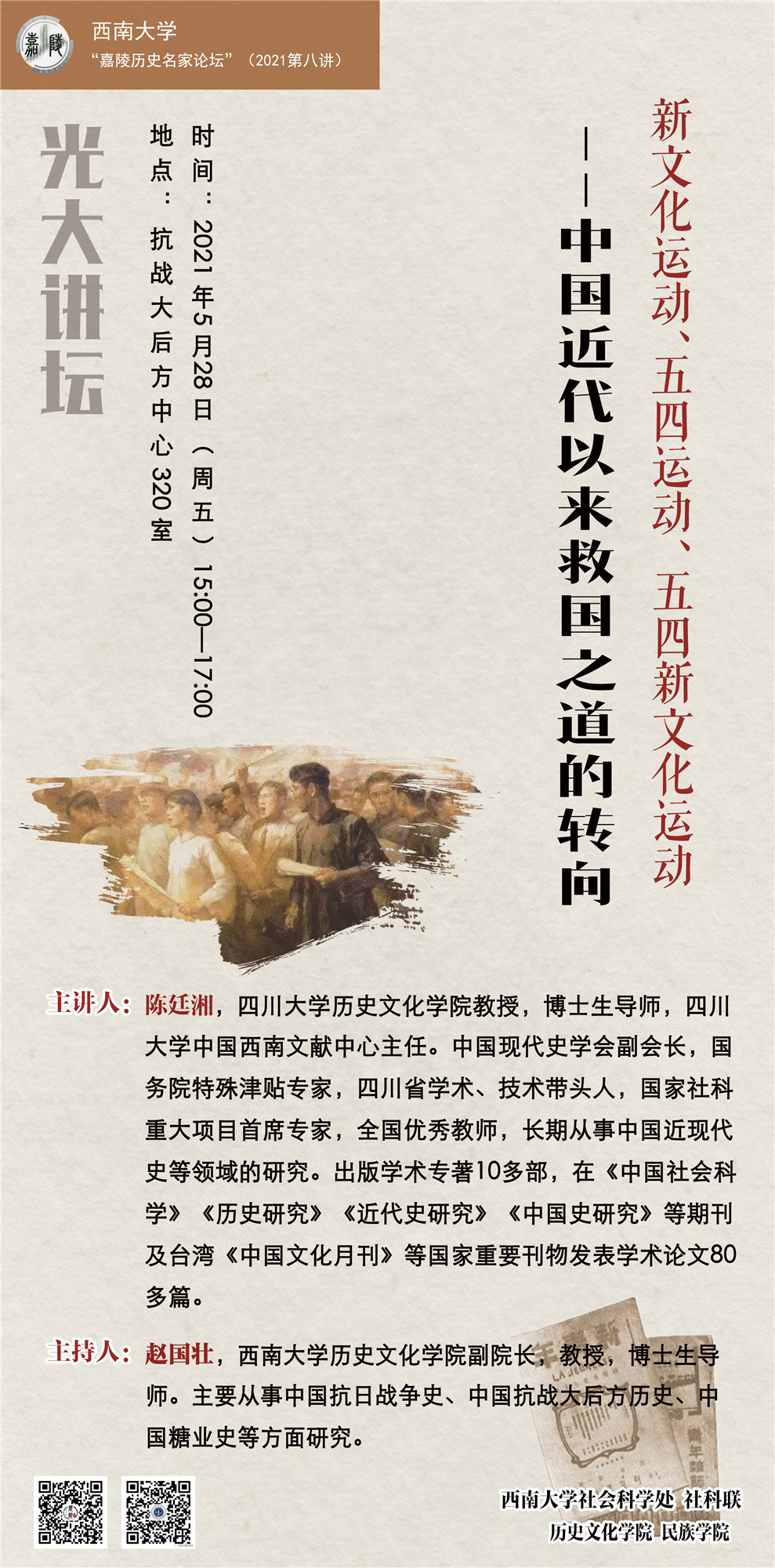 主讲人:陈廷湘,四川大学k1体育教授,博士生导师,四川大学中国西南文献中心主任。中国现代史学会副会长,国务院特殊津贴专家,四川省学术、技术带头人,国家社科重大项目首席专家,全国优秀教师,长期从事中国近现代史等领域的研究。出版学术专著10多部,在《中国社会科学》《历史研究》《近代史研究》《中国史研究》等期刊及台湾《中国文化月刊》等国家重要刊物发表学术论文80多篇。